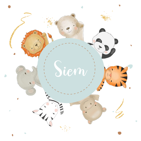 Lief geboortekaartje voor jongen met lieve tekening van dieren