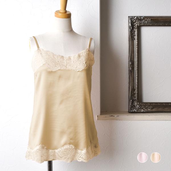 シルクサテン レース付きキャミソール 日本製 レディース ピンク ベージュ M/L :sh-93448:シルク専門店イーズクリエーション